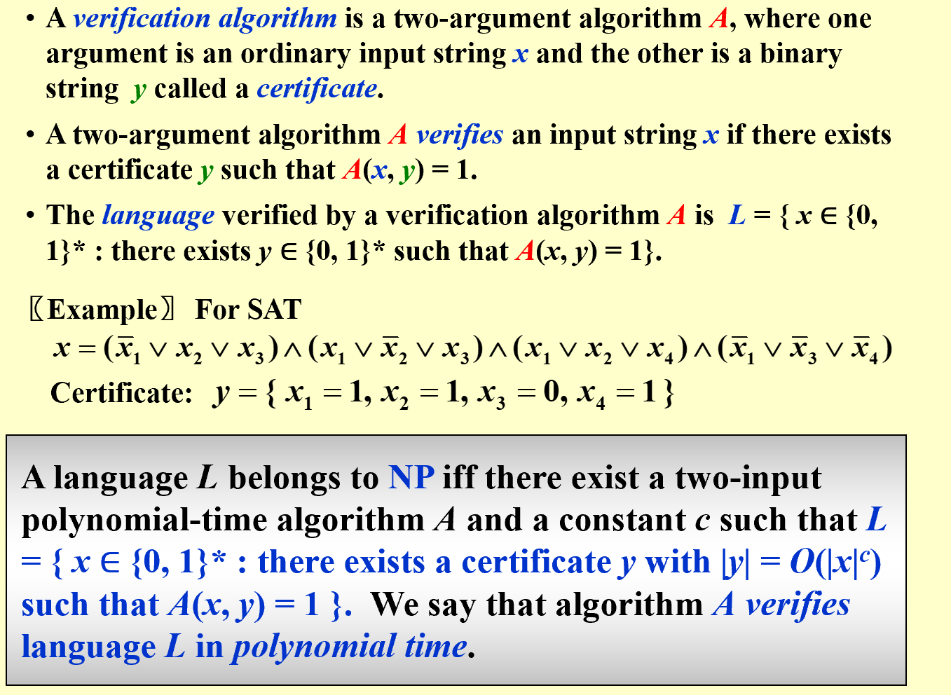 - SAT: the satisfiability problem, which is the first problem to be proved NPC. Describe the problem as follows: